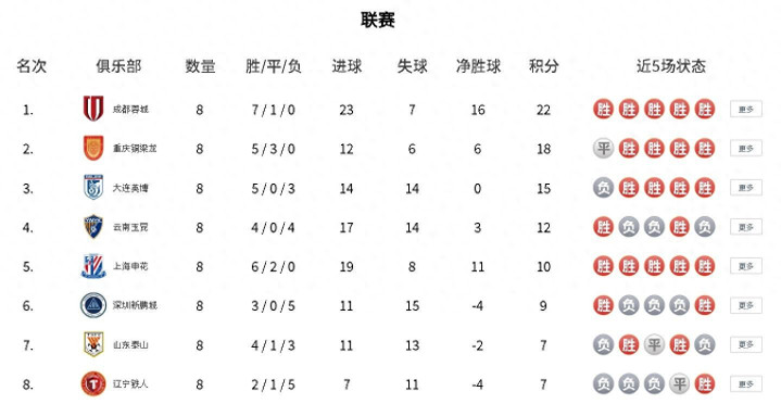 争冠区,成都蓉城一骑绝尘。重庆、山东、海港组成第二集团。申花、国安等传统强队正在从后追赶。保级区,从第12名开始人人自危。中超的赛季走向,正在朝着两极分化狂奔。